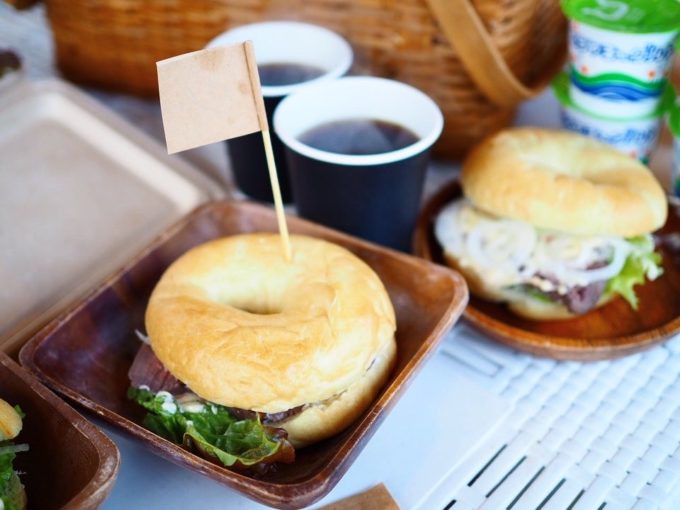 食材を囲んで、自分の分は自分で挟んでもよし、みんなでワイワイベーグルサンド作りが楽しいですね♪
