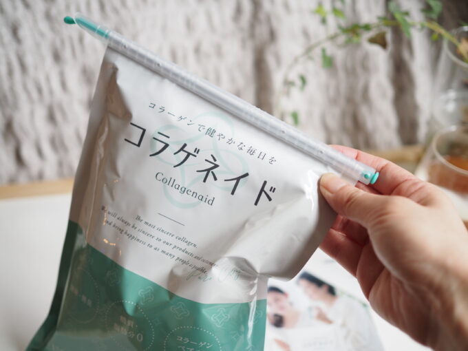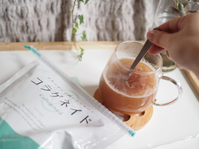 粉末タイプのコラーゲンで、無味無臭なので好きな食べ物や飲み物に混ぜてつかえますよ。